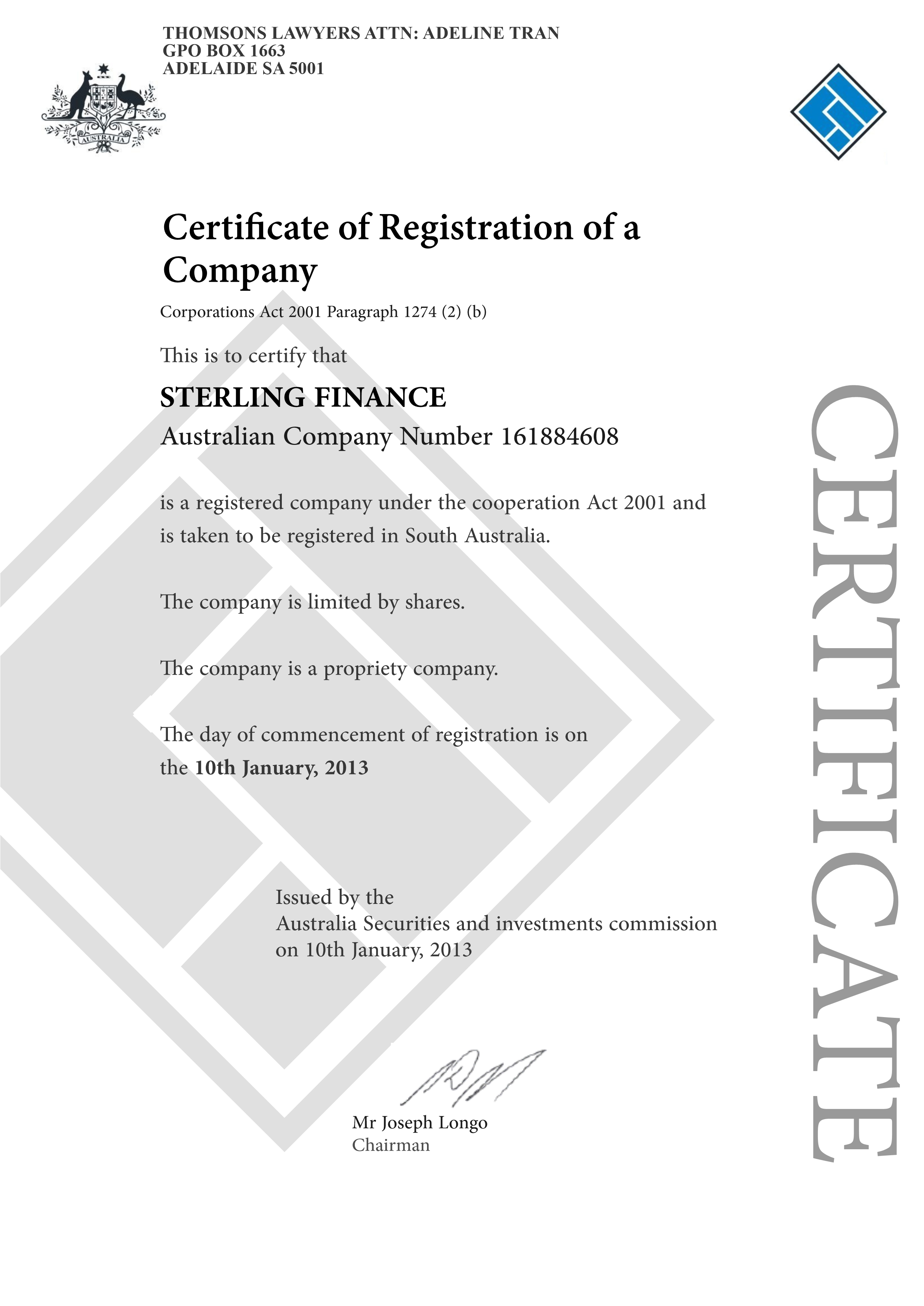 Sterling Finance is an officially registered company in the Australian Proprietary Company, Limited By Shares. The company has registration number is 161884608 and it is located at BUNDOORA 3083 Victoria Australia. We are a group of passionate, independent thinkers who never stop exploring new ways to improve trading for the self-directed investor. Wealth Pay is an award-winning broker focused on online foreign exchange and Contract for Difference (CFD) trading services. With our CFD products, you can do leveraged trading in global financial markets. Our mobile app and web-based trading platforms offer customers a superior experience, with competitive transaction costs, fast transaction execution and excellent customer service. With Wealth Pay, you can freely choose assets amongst forex, indices, commodities, shares and cryptocurrencies etc. and grasp trading opportunities under price fluctuations in the market. Wealth Pay is authorised and regulated by the Australian Securities and Investments Commission (ASIC) and holds an Australian Financial Services Licence . All transactions and operations comply with the applicable Australian regulations..
